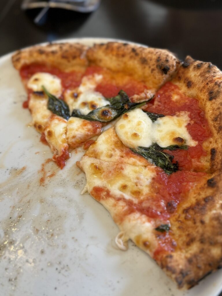いただいたピッツァは生地が非常に香ばしく、チーズやオイルもたっぷりと使われており、とても美味しかったです。