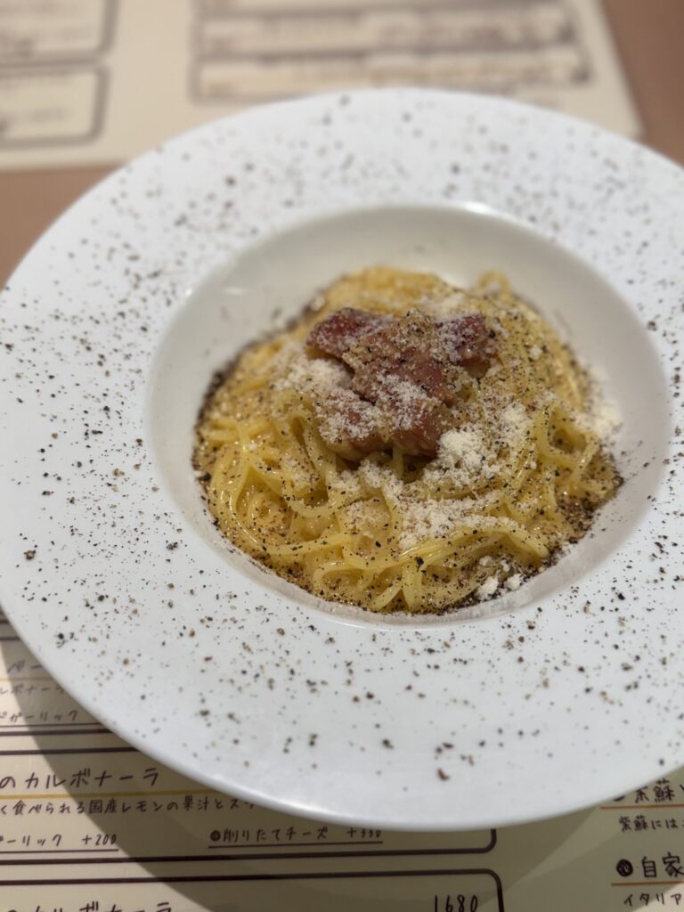 こちらでいただいたのは、生クリームを一切使わないスタイルのカルボナーラ。
